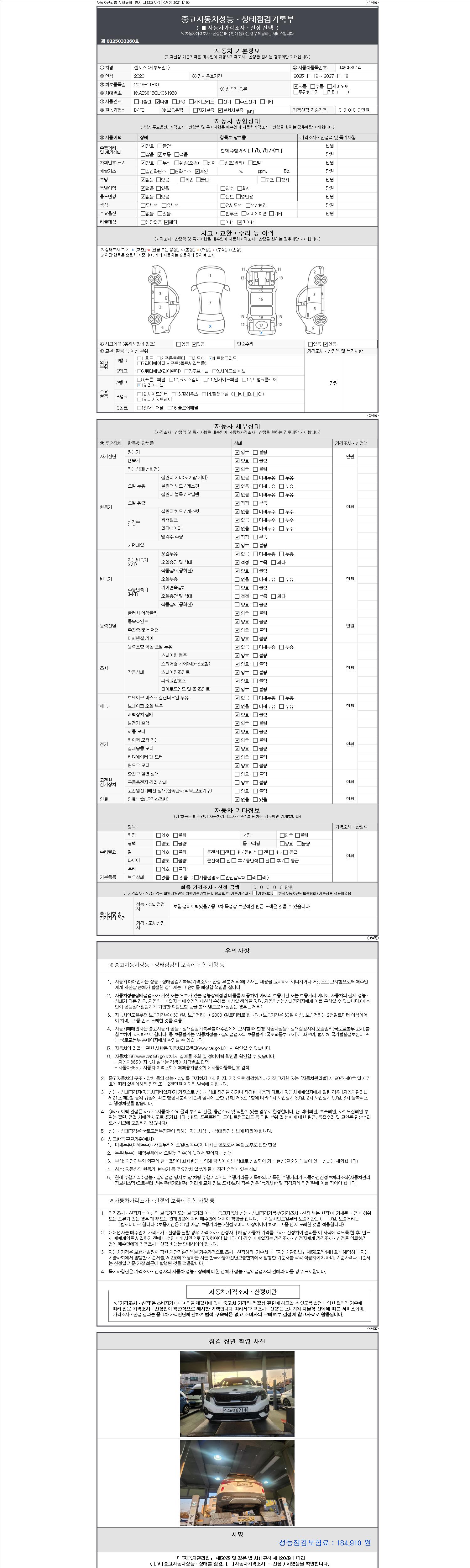 2. 차량 등록증이나 성능점검지 등을 상담자에게 요청및 확인하시고 사전에 미리 점검 하시기를 권유드립니다.