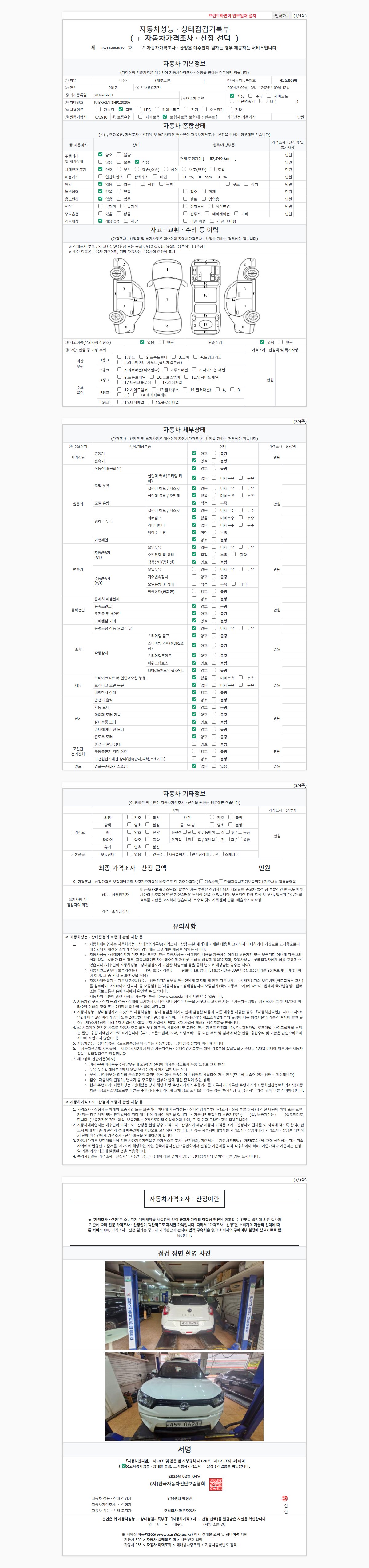 2. 차량 등록증이나 성능점검지 등을 상담자에게 요청및 확인하시고 사전에 미리 점검 하시기를 권유드립니다.