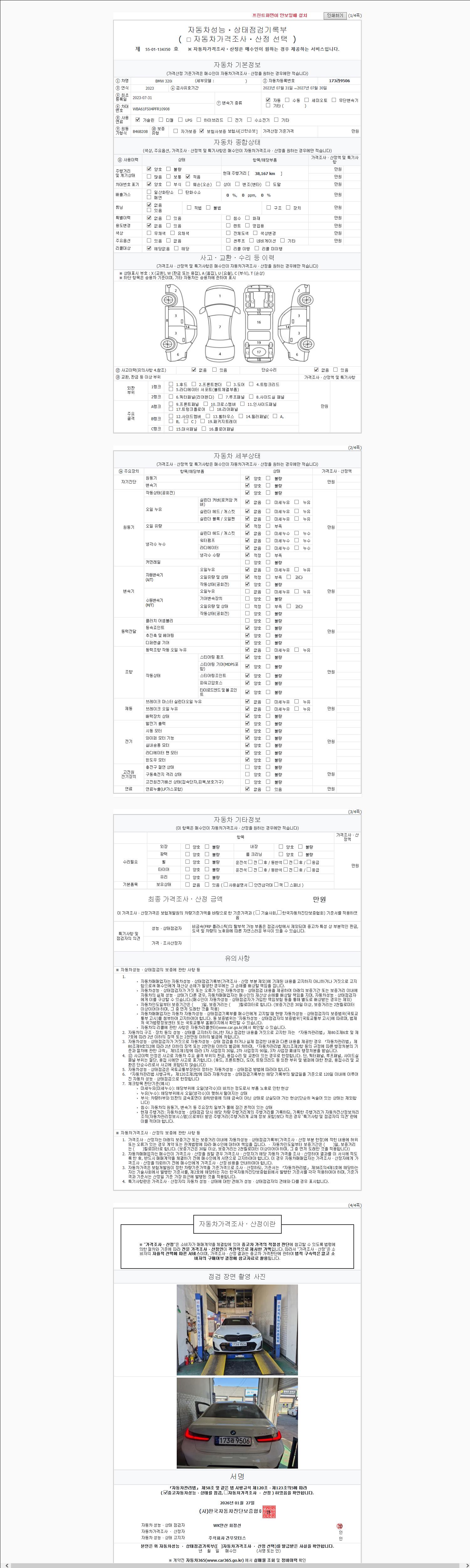 | 주행거리 | 38,167 km | 차량번호 | 173라9506 |