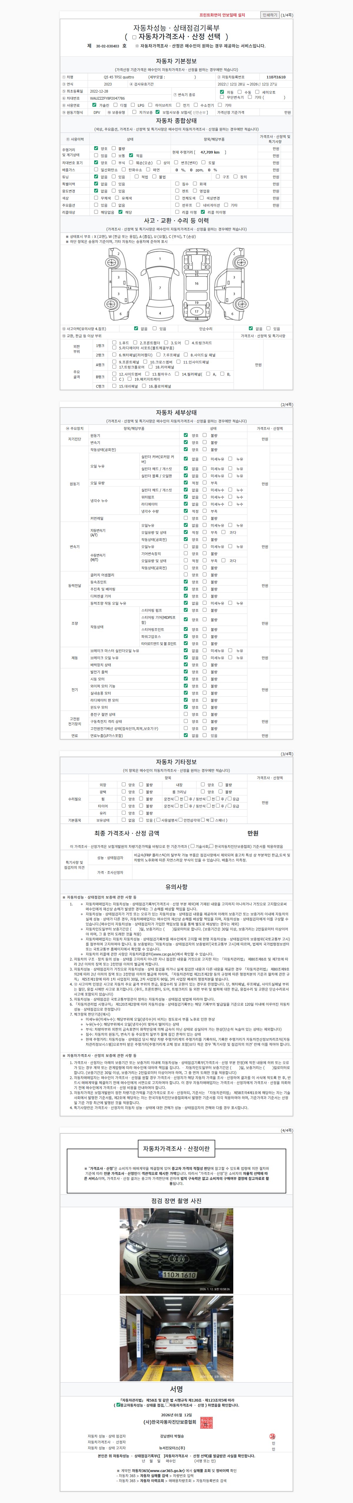 2. 차량 등록증이나 성능점검지 등을 상담자에게 요청및 확인하시고 사전에 미리 점검 하시기를 권유드립니다.