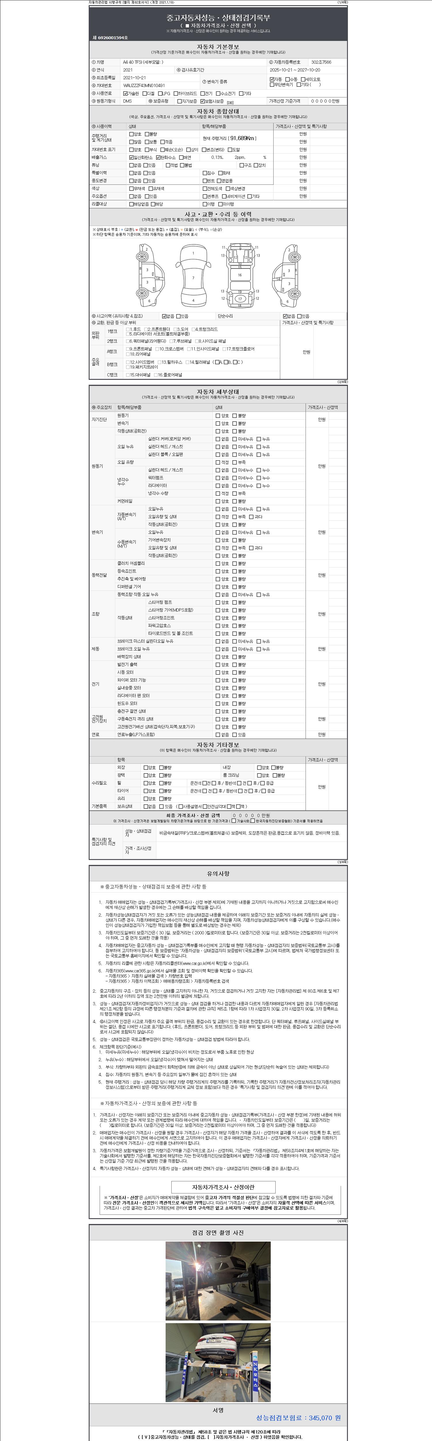 2. 차량 등록증이나 성능점검지 등을 상담자에게 요청및 확인하시고 사전에 미리 점검 하시기를 권유드립니다.