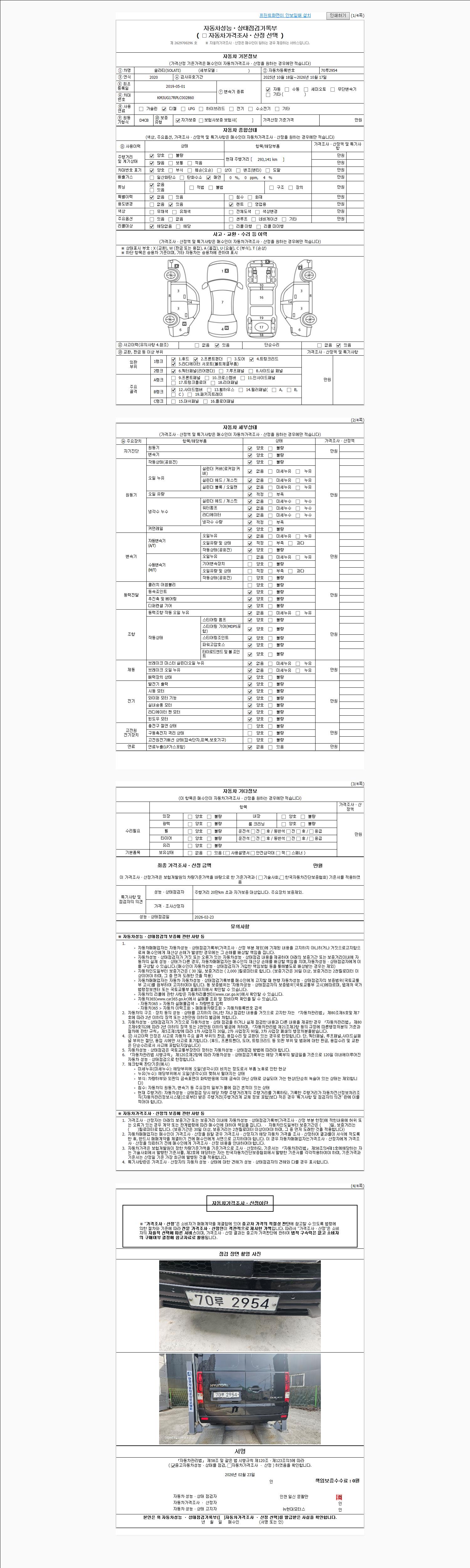 2. 차량 등록증이나 성능점검지 등을 상담자에게 요청및 확인하시고 사전에 미리 점검 하시기를 권유드립니다.