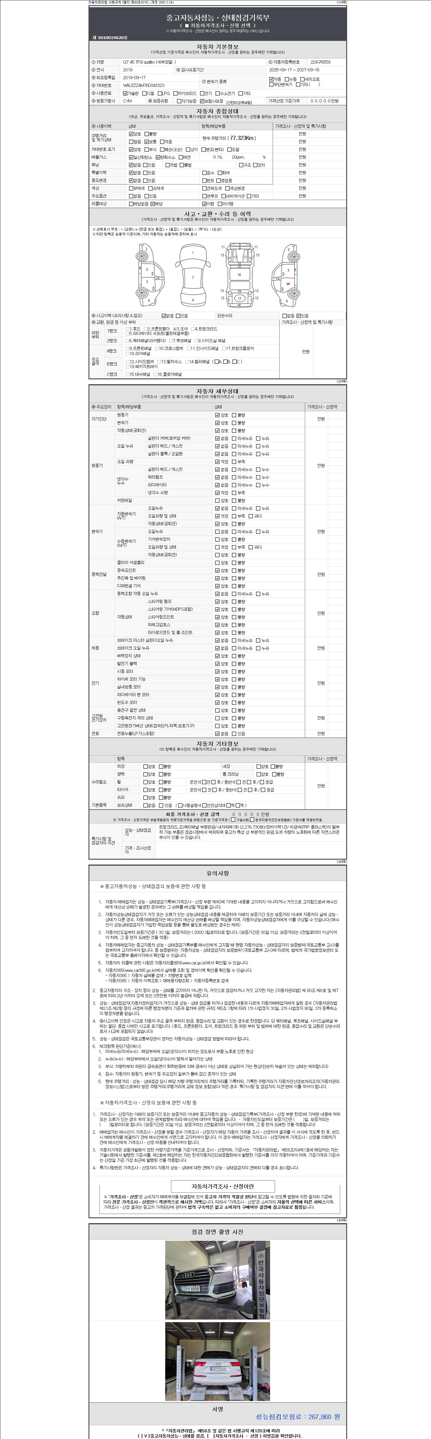 2. 차량 등록증이나 성능점검지 등을 상담자에게 요청및 확인하시고 사전에 미리 점검 하시기를 권유드립니다.
