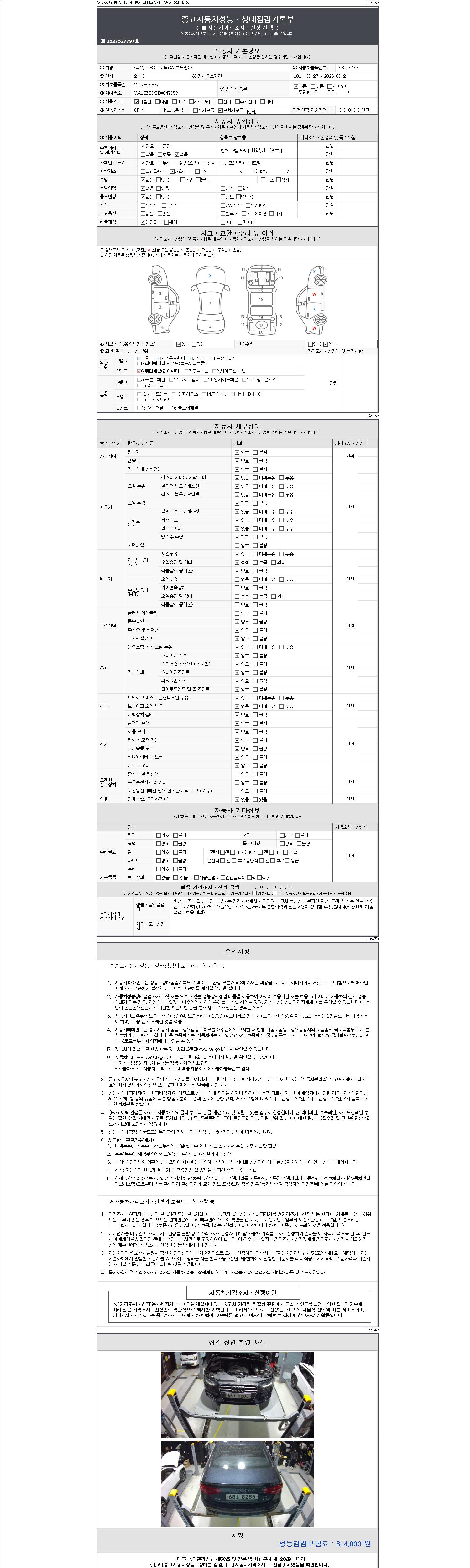 2. 차량 등록증이나 성능점검지 등을 상담자에게 요청및 확인하시고 사전에 미리 점검 하시기를 권유드립니다.