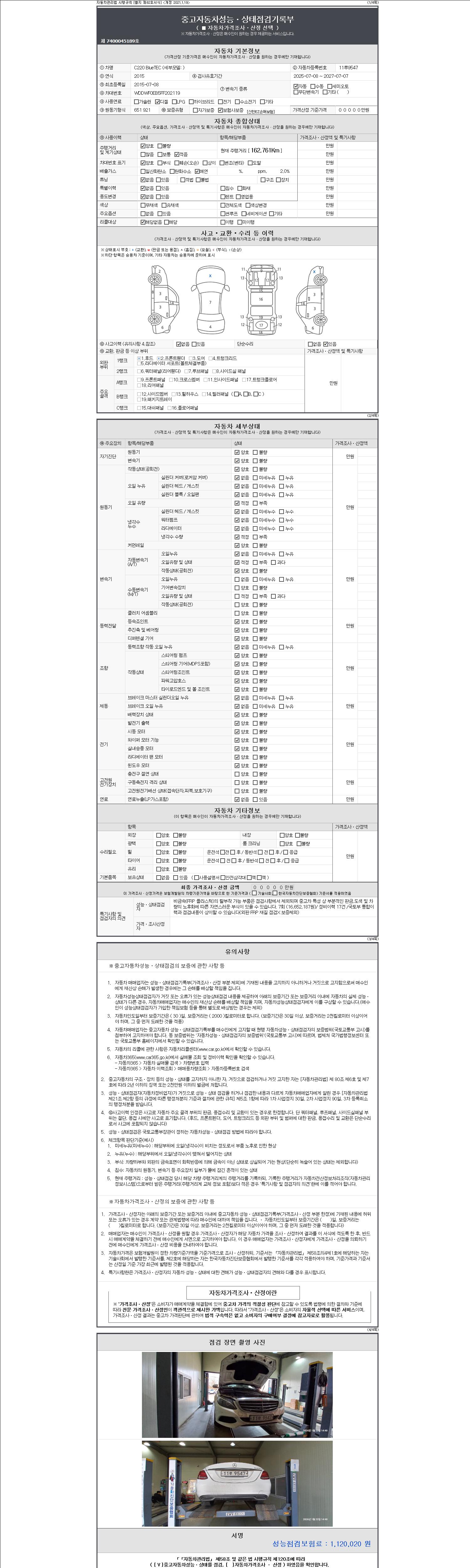 2. 차량 등록증이나 성능점검지 등을 상담자에게 요청및 확인하시고 사전에 미리 점검 하시기를 권유드립니다.