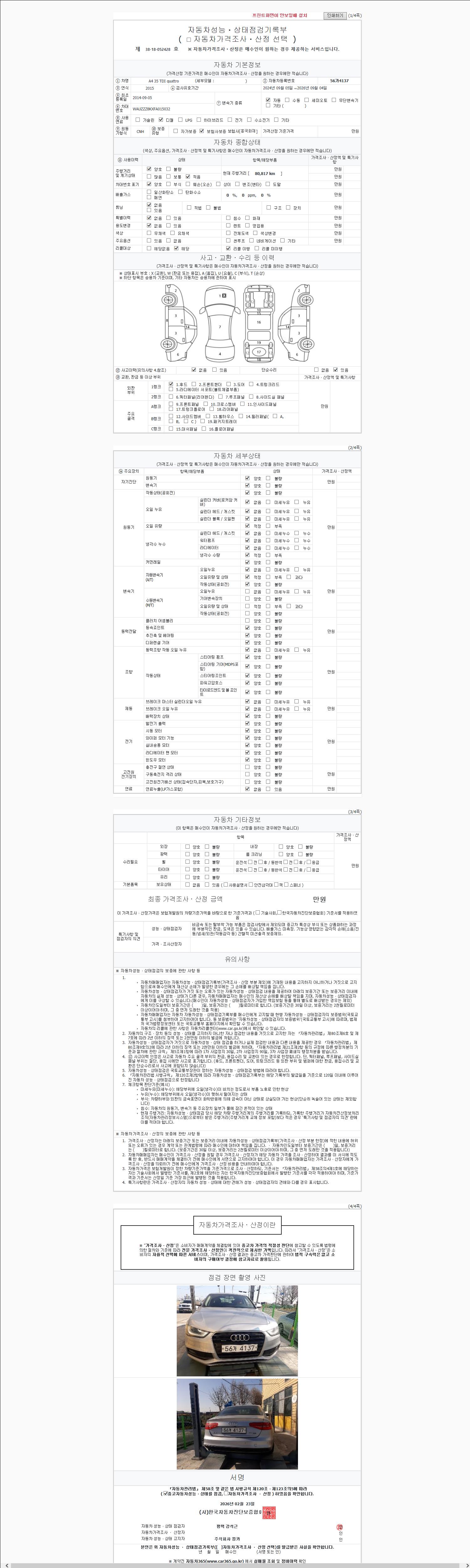 2. 차량 등록증이나 성능점검지 등을 상담자에게 요청및 확인하시고 사전에 미리 점검 하시기를 권유드립니다.
