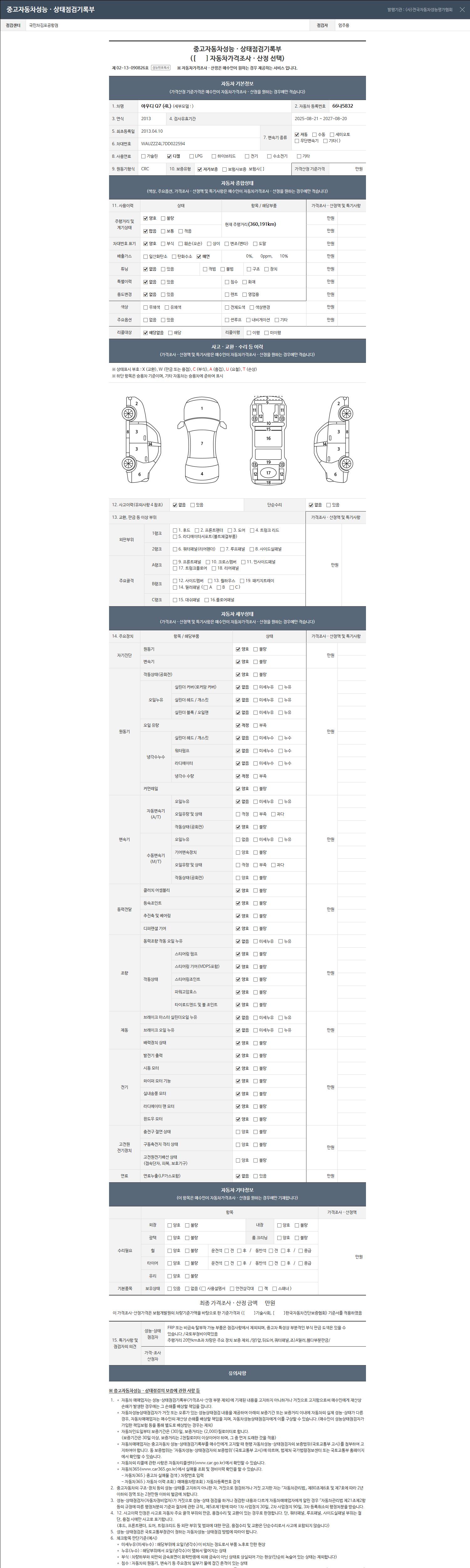 2. 차량 등록증이나 성능점검지 등을 상담자에게 요청및 확인하시고 사전에 미리 점검 하시기를 권유드립니다.