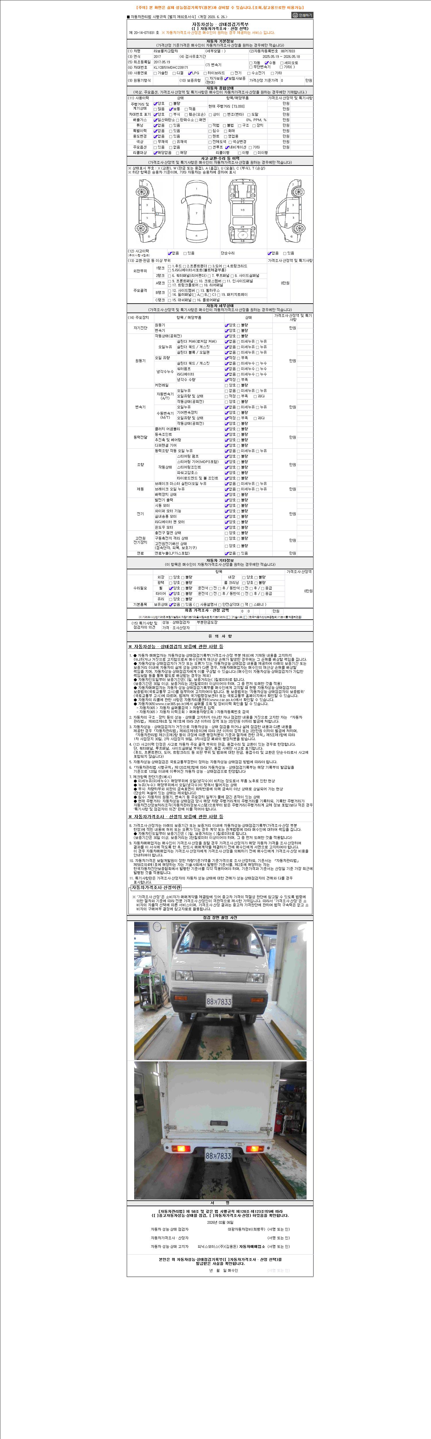 2. 차량 등록증이나 성능점검지 등을 상담자에게 요청및 확인하시고 사전에 미리 점검 하시기를 권유드립니다.