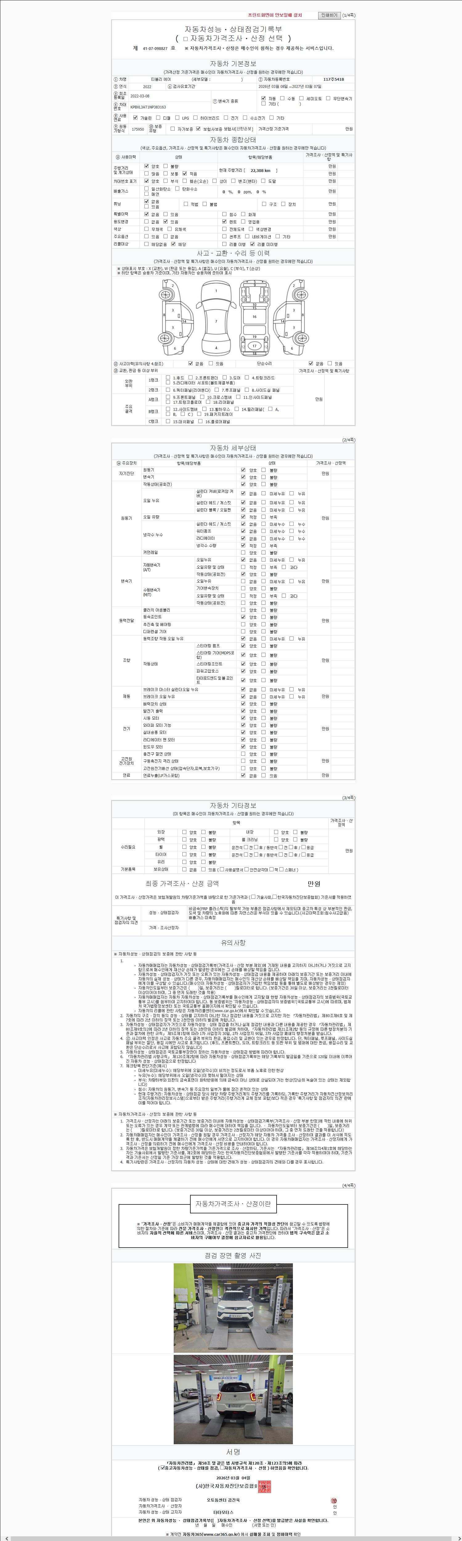 2. 차량 등록증이나 성능점검지 등을 상담자에게 요청및 확인하시고 사전에 미리 점검 하시기를 권유드립니다.