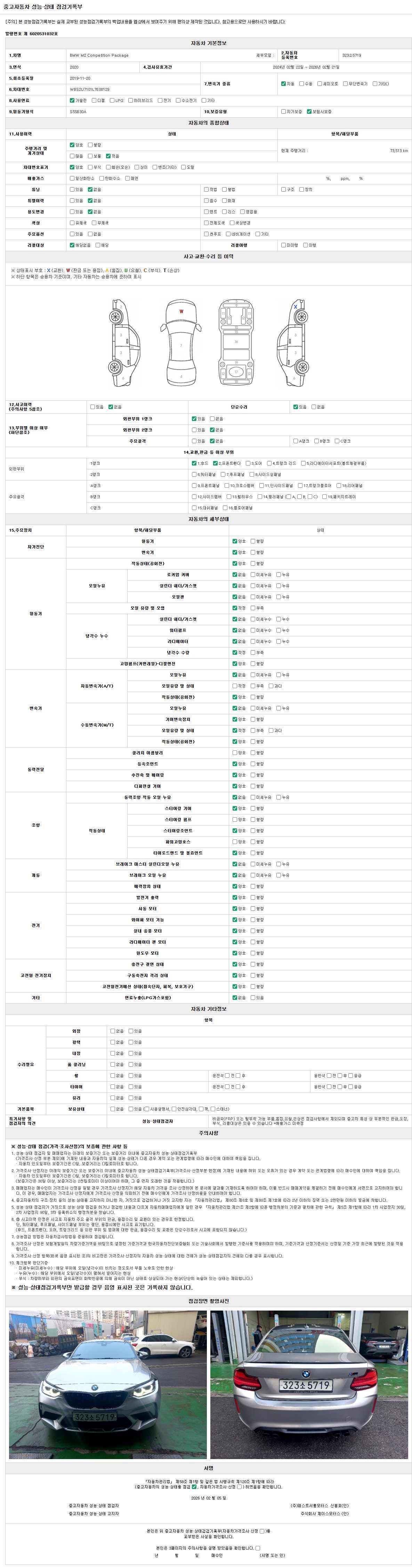 | 주행거리 | 73,513 km | 차량번호 | 323소5719 |