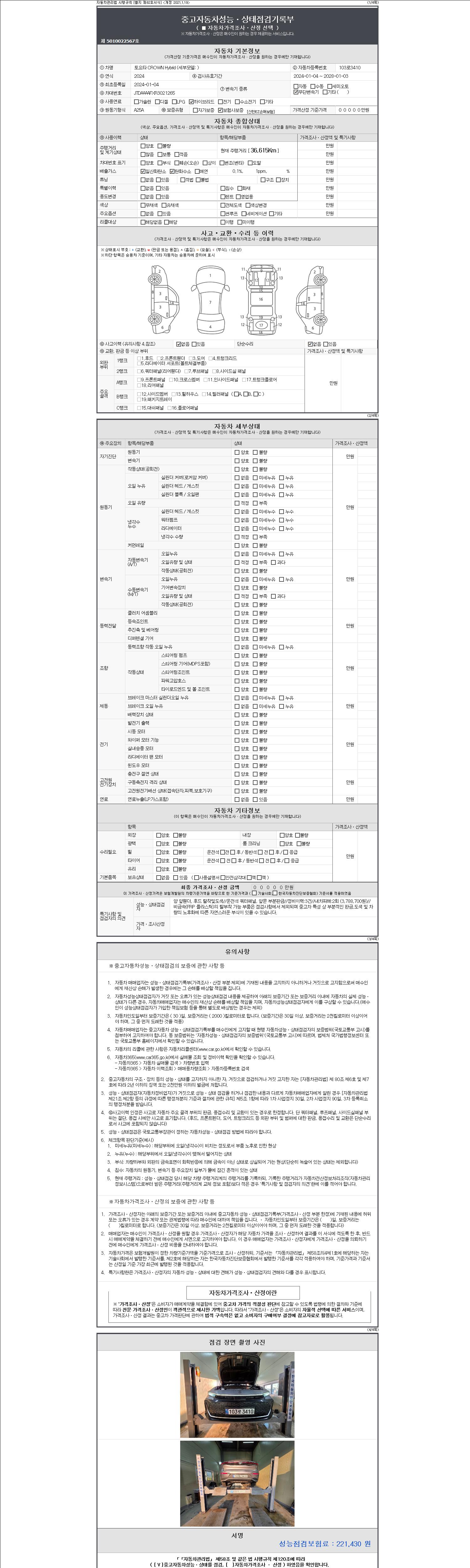 3. 차량의 이미지중 차량번호가 의도적으로 가공, 편집 된 경우나 지나치게 가격이 낮을 경우 더욱 세심한 주위를 요구합니다.