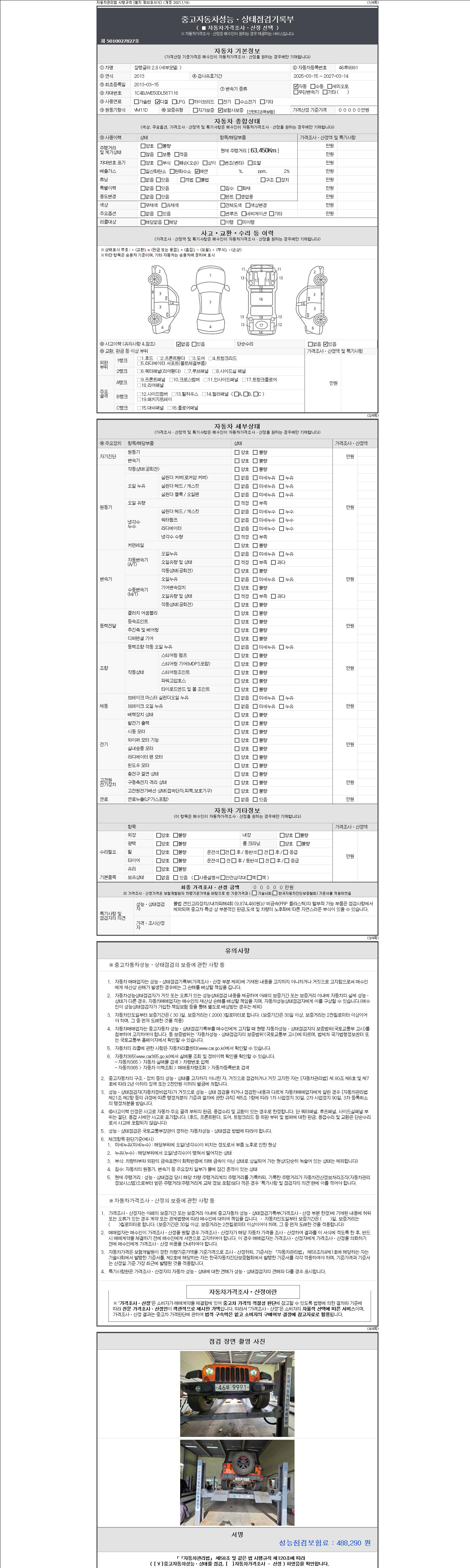 2. 차량 등록증이나 성능점검지 등을 상담자에게 요청및 확인하시고 사전에 미리 점검 하시기를 권유드립니다.