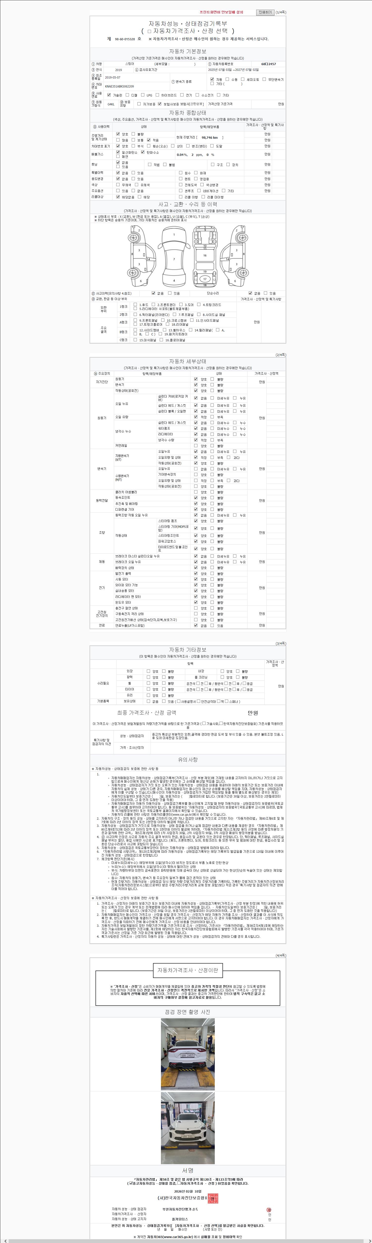 2. 차량 등록증이나 성능점검지 등을 상담자에게 요청및 확인하시고 사전에 미리 점검 하시기를 권유드립니다.