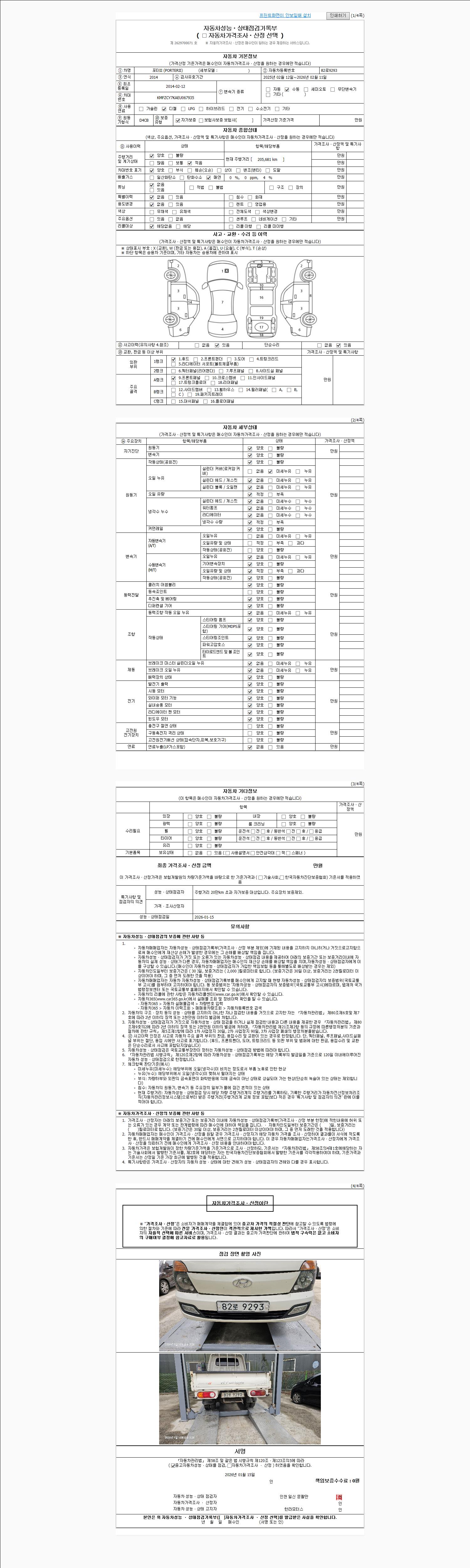 2. 차량 등록증이나 성능점검지 등을 상담자에게 요청및 확인하시고 사전에 미리 점검 하시기를 권유드립니다.