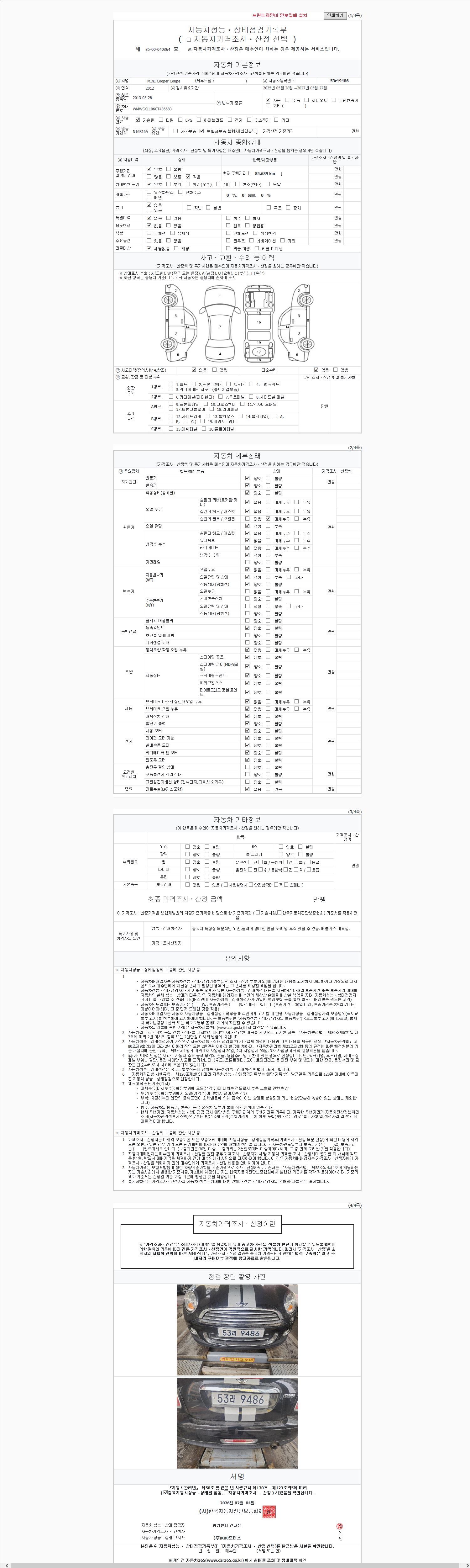 2. 차량 등록증이나 성능점검지 등을 상담자에게 요청및 확인하시고 사전에 미리 점검 하시기를 권유드립니다.